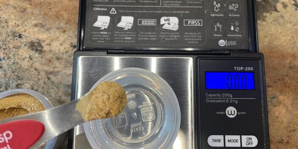 Once the mushrooms are ground, I use a 1/8 teaspoon to help transfer them into the designated container for daily use storage.