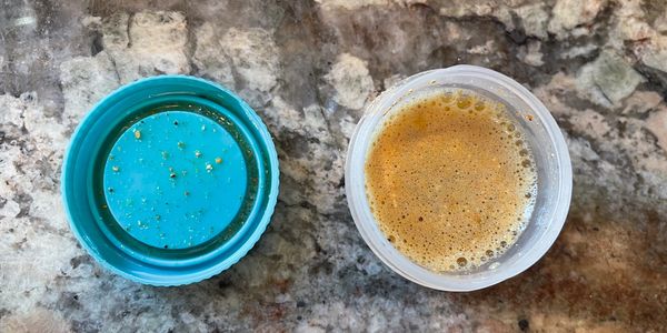 After I add (roughly) .50 grams of ground Cordyceps mushrooms to the container that has 1 tablespoon of water, I am ready to put the cover on and shake/mix.