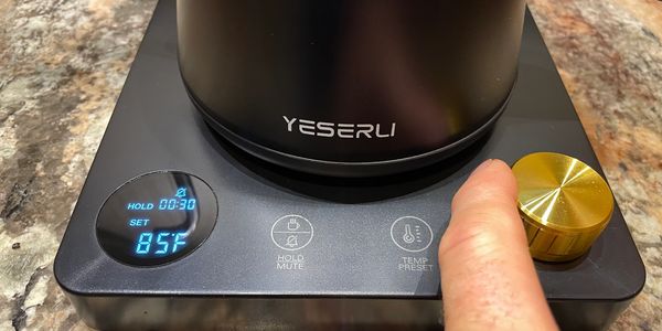 Whether I am simmering for 15 minutes at 176°F or simmering for 2 hours at 142°F, I periodically rotate the tea kettle on the heating base of the unit. Typically, I do this around the 1-hour mark and again at 1 hour and 55 minutes, just before increasing the temperature to 166°F for the final 5 minutes. The tea kettle remains flush and flat on the base of the heating unit throughout the rotation process. This means I do not lift the tea kettle off the heating unit base.